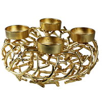 Der Adventskranz in Gold verleiht Ihrer Weihnachtsdekoration ein luxuriöses Flair. Lassen Sie die Kerzen brennen und setzen sie den Adventskranz als optische Mitte Ihrer winterlich-festlichen Komposition aus Figuren und Naturdeko. Dank seines zeitlosen Designs harmoniert das Raumobjekt mit nahezu jeder Einrichtungslösung.
