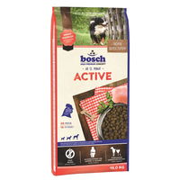 Bosch Active ist ideal für erwachsene Hunde mit erhöhtem Energiebedarf zur Unterstützung der optimalen Ausdauer und Leistungsfähigkeit (z. B. Hunde im Wach- & Schutzdienst, Sporthunde, usw.).