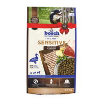 Bosch Sensitive Ente & Kartoffel ist ein Alleinfuttermittel für ausgewachsene, ernährungssensible Hunde und ist reich an frischer Ente (30 %) als alleinige tierische Proteinquelle (Single Animal Protein), sowie Kartoffeln (16 %) mit geringem allergenen Potential werden diese als Haupt-Kohlenhydratträger eingesetzt, während auf den Zusatz von Getreide komplett verzichtet wird. Durch den Einsatz unseres Immun-Komplexes aus Mannanen und Glucanen kann die Darmflora stabilisiert sowie das körpereigene Immunsystem gestärkt werden. Bosch Sensitive Ente & Kartoffel eignet sich daher für viele Hunde mit bestimmten Futtermittelunverträglichkeiten und -allergien, die sich in Verdauungs-, Haut- oder Fellproblemen äußern können.