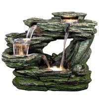Dieser Polyresin-Brunnen in Felsoptik besticht mit stimmungsvoller Beleuchtung und sanftem Wasserrauschen.
