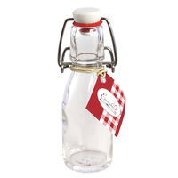 Diese kompakte Flasche fasst 100 ml und eignet sich ausgezeichnet zum Aufbewahren von selbst gebrannten Schnäpsen oder selbst gemachten Sirups. Aber auch zum Verschenken von kleinen Kostproben Ihrer heimischen Brennerei und Ihrer Kochkunst ist diese Miniaturflasche mit einer Anhängerkarte die perfekte Wahl. Die Flasche überzeugt nicht zuletzt durch ihren auslaufsicheren Bügelverschluss.