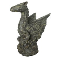 Drache auf Felsen sitzend, grau, Steinguss, 58 x 42 x 33 cm