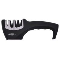 Mit diesem manuellen Schärfer mit 4 Schlitzen können Sie alle Stahl- und auch Keramikmesser schärfen! Sein Design optimiert das Messerschärfen und bietet hohen Bedienkomfort. Sein Plus: Auch das Schärfen von Scheren ist möglich!