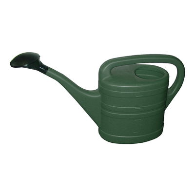 Robuste, praktisch unverwüstliche Kunststoffgießkanne in gärtnerischem Grün mit abnehmbarer Brause.