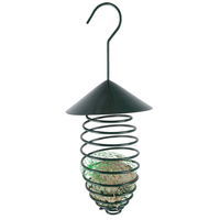 Futterfeder aus pulverbeschichtetem Metall mit dunkelgrünem Dach. Bietet Platz für bis zu drei Meisenknödel.