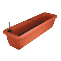 Der Pflanzkasten 'Aqua Andalucia' von Geli in der natürlichen Farbe Terrakotta ist aus langlebigem Kunststoff gefertigt und überzeugt mit integriertem Bewässerungssystem. Ein Wasserspeicher lässt Ihre Pflanzen nicht verdursten, während ein Wasserstandanzeiger über den richtigen Zeitpunkt fürs Gießen informieren. Die Überlauföffnungen sorgen wiederum für eine gute Drainage.