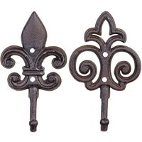 Aus antik-rostbraunem Gusseisen gefertigte Haken, die ganz universell eingesetzt werden können. Die Haken sind in der Form französischer Lilien gehalten und in zwei verschiedenen Motiven erhältlich. Einfach und schnell montiert, können an den Haken Gartengeräte und vieles mehr platzsparend aufbewahrt werden.