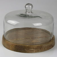 Auf der Holzplatte mit Glashaube sind Ihre Speisen bestens geschützt und erscheinen im vorteilhaften Licht.