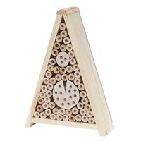 Dieses dreieckige Insektenhotel aus Massivholz eignet sich perfekt für Wildbienen und weitere Nützlinge.
