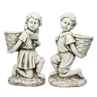 Die Gartenskulptur 'Junge mit Korb' aus Polymagnesium besticht durch feine Details.