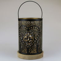 Metall-Laterne, schwarz/gold, mit Mangoholz