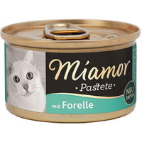 Miamor Pastete mit Forelle ist eine besonders zarte Fleischpastete mit allen wichtigen Nährstoffen, die eine Katze braucht. Die zarte Textur lässt Katzenherzen höherschlagen. Mit einem ausgeglichenem Magnesium Verhältnis kann der Struvitsteinbildung vorgebeugt werden.