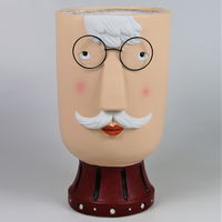 Pflanzkopf 'Mann mit Brille', grau, Ø 25 x H 44 cm