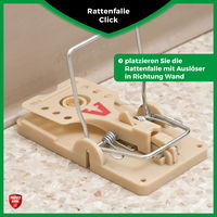 Entscheiden Sie sich für die Rattenfalle Click, um lästige Schadnager im und um ein Gebäude loszuwerden. Die Rattenfalle aus strapazierfähigem Kunststoff überzeugt durch eine hohe Schlagkraft und Präzision. Dabei ist die Rattenfalle schnell scharfgestellt und funktioniert ohne Einsatz von Rodentiziden.