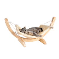Ein weicher Schlafplatz für süße Katzenträume: Hängemattengestell aus Echtholz mit waschbarer, beiger Plüschhängematte.