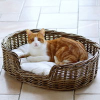 Das natürliche Flechtwerk des in Handarbeit hergestellten Korbes wirkt besonders einladend und macht den Korb zu einem herrlichen Blickfang. Ausgestattet ist der Korb mit einem weichen Kissen, das für angenehme Träume von Hund und Katze sorgt. Der Bezug des Kissens besteht aus Baumwolle, die Füllung aus Kapok. Dabei handelt es sich um ein reines Naturprodukt, das auch als Pflanzendaune bekannt ist. Das komplette Kissen kann bei Bedarf bei 30 °C in der Waschmaschine gewaschen werden.