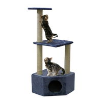 Machen auch Sie Ihrem Stubentiger eine große Freude und überraschen Sie ihn mit dem attraktiven Kratzboy von Silvio Design. Dieser Kratzbaum findet in jeder Wohnung einen Platz und bietet alles, was das Herz Ihres Samtpfötchens begehrt. In der großen, fünfeckigen Wohnhöhle findet Ihr Liebling einen perfekten Platz zum Verstecken und Schlafen. Von der Liegefläche und der Kuschelmulde aus kann die Katze Ihre Umgebung beobachten. Alle Holme des blauen Kratzbaums sind mit stabilen Sisal umwickelt. Sie dienen der Krallenpflege und halten selbst den stärksten Krallen stand.
