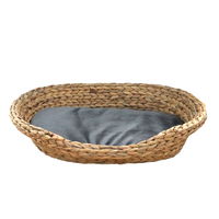 Dieses Tierbett aus Wasserhyazinthe mit weichem Kissen ist ein kuscheliges Schlafplätzchen für Katzen oder Hunde.