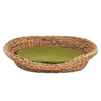 Das olivgrüne Tierbett aus Wasserhyazinthe mit weichem Liegekissen ist ein gemütlicher Schlafplatz für Hund oder Katz‘.