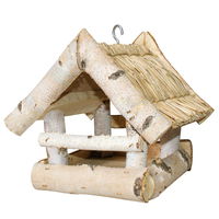 Eine ungestörte Futterstelle im Winter bietet das Vogelhaus Birke mit Strohdach, das sich leicht im Garten anbringen lässt und zudem ein Hingucker ist.