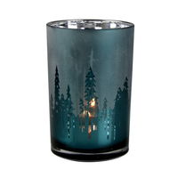 Windlicht mit Baum, petrol, Glas, H 24 x Ø 18cm