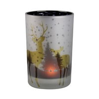 Windlicht mit Hirsch, schwarz & gold, Glas