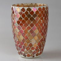 Dieses Glas-Windlicht mit Mosaik-Oberfläche präsentiert sich in fröhlichem Orange und setzt effektvolle Akzente.